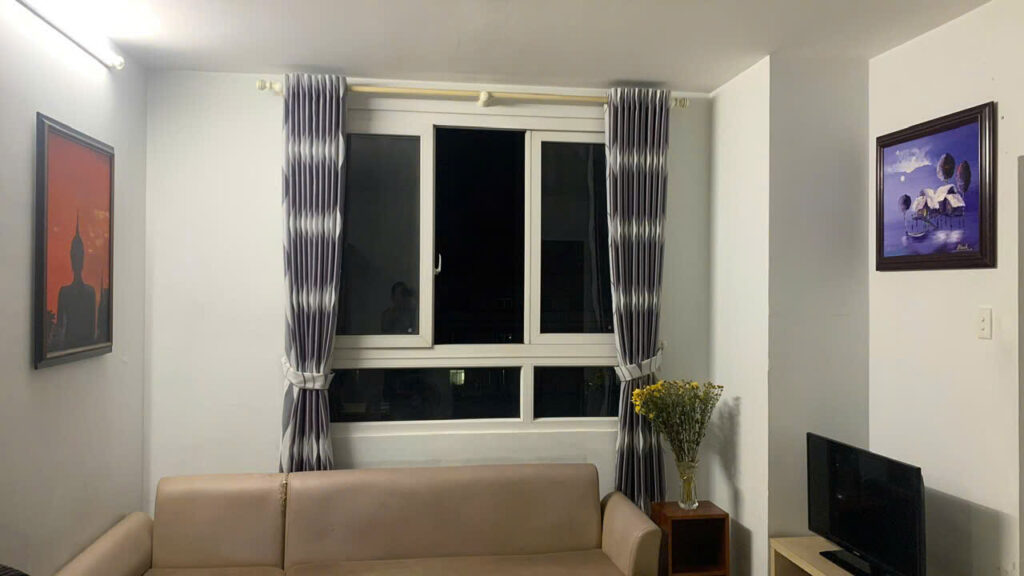 Căn hộ được trang bị nội thất cơ bản, bao gồm giường, tủ, salon, máy giặt, tủ lạnh, máy điều hòa, rèm cửa và dây phơi đồ. Người thuê có thể dọn vào ở ngay mà không cần đầu tư thêm nhiều chi phí ban đầu.